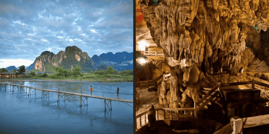 Prima colazione. Questa mattina dedicata alla visita di Vang Vieng, piccola cittadina situata sulle sponde del fiume Nam Song, in uno scenario idilliaco. Conosciuta come “la baia di Halong del Laos”, Vang Vieng è il luogo ideale per gli amanti della natura. Le scogliere calcaree e le valli che circondano Vang Vieng ospitano numerose grotte e caverne. Visiterai Tham Jang, la più famosa di queste grotte a Vieng Vieng, utilizzata dalla popolazione locale come rifugio dagli invasori cinesi 200 anni fa. Poi prosegui verso Tham Nanga o la Grotta degli Angeli, che è piena di enormi formazioni calcaree e presenta spettacolari stalattiti in varie formazioni uniche. Scoperta della Laguna Blu, luogo ideale per rilassarsi e rinfrescarsi prima di ritornare a Vang Vieng. Arrivederci Vang Vieng per la partenza per Vientiane. Situata sulle rive del Mekong, questa capitale evoca immagini esotiche, con un curioso mix di influenze laotiane, tailandesi, cinesi, vietnamite e francesi. Pranzo e cena liberi.